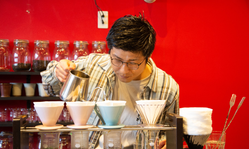 昔ながらの純喫茶に憧れを持ち、その雰囲気が好きでやってみようというキッカケで「フスクコーヒー」を始めた賦句さん。